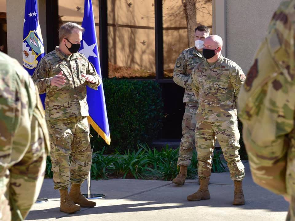 U.S. Air Force Maj. Gen. Gregory Jones, commander of the California Air National Guard, along with Command Chief Master Sgt. Steven Pyszka, the component’s senior enlisted advisor, and U.S. Army Maj. Gen. Laura Yeager, who commands the California Army National Guard, visited four of the state’s five wings to honor the state’s top Airmen.
