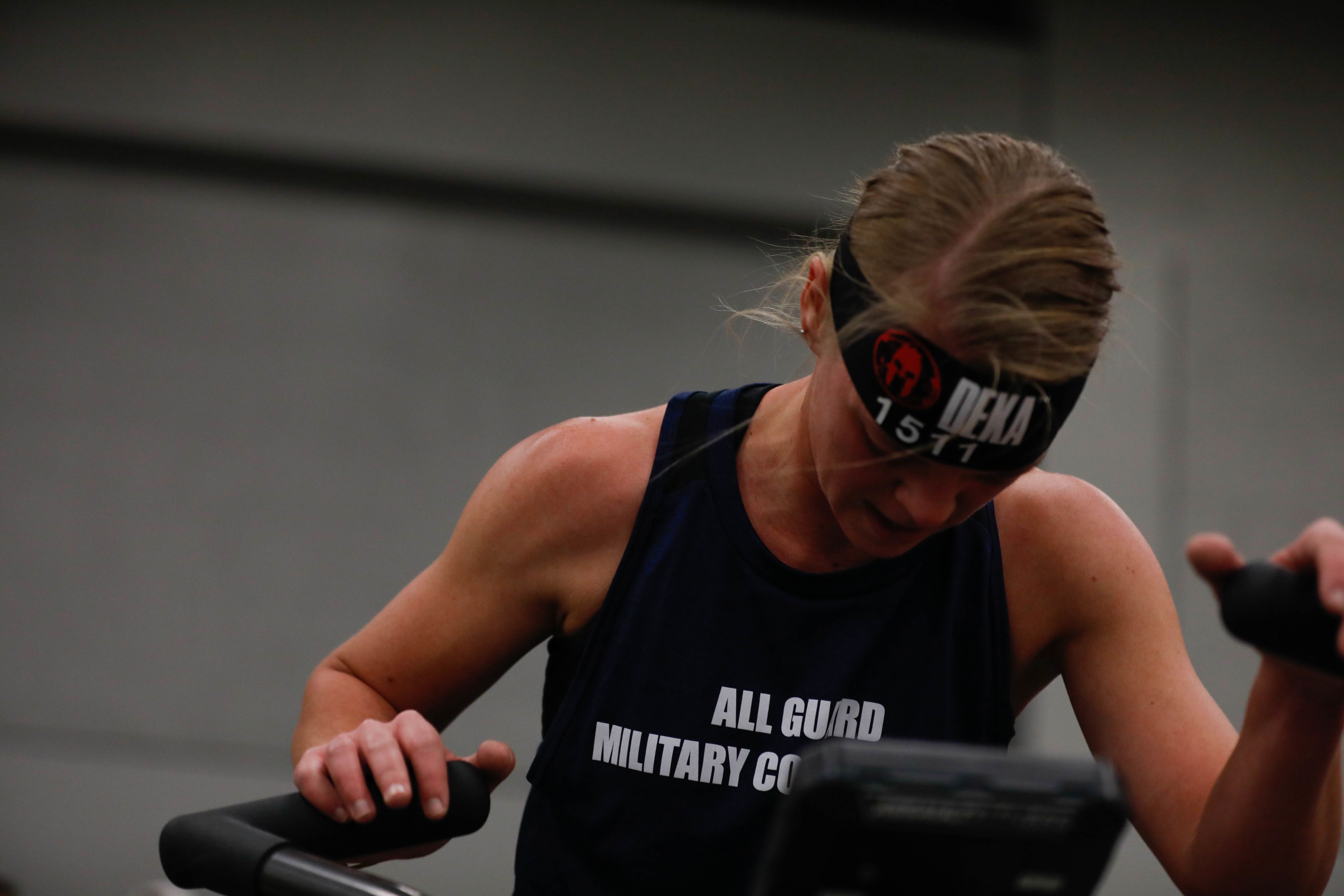 U.S. Army Maj. Robert Killian, a signal officer with Joint Forces Headquarters, rows 500 meters during the Spartan DEKA FIT, a fitness competition that consists of 10 events, each preceded by a 500-meter run, in Austin, Texas, Jan. 15.