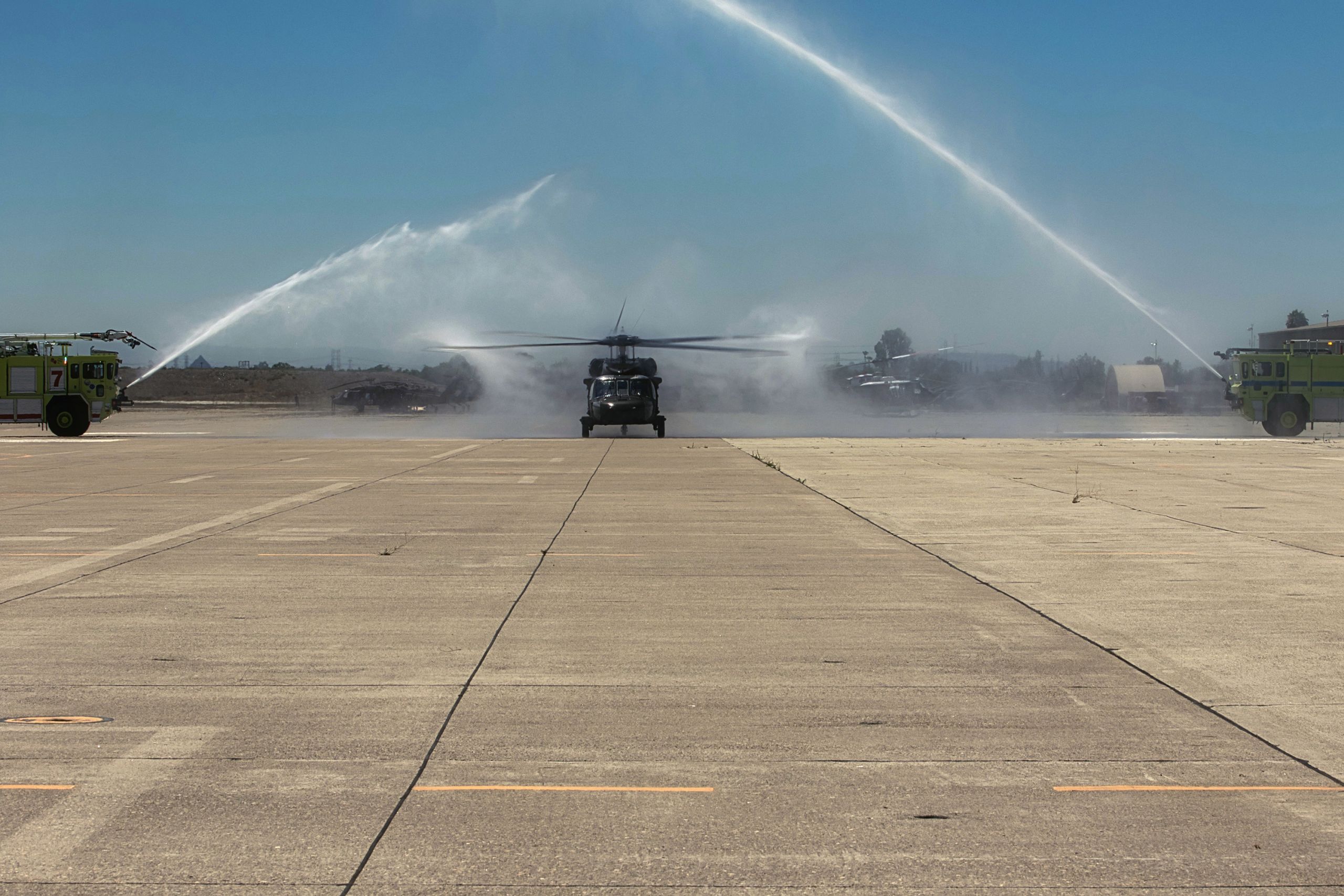 LOS ALAMITOS, Calif. – After more than 28 years flying the friendly, and sometimes not so friendly, skies at home and abroad as a U.S. Army aviator, Chief Warrant Officer 5 Robert Metoyer flew into retirement July 31, 2020, leading a training flight of 12 California Army National Guard UH-60M Black Hawk helicopters — a fitting salute and fond farewell from his comrades at the 1st Assault Helicopter Battalion, 140th Aviation Regiment, based at Los Alamitos Army Airfield on Joint Forces Training Base, Los Alamitos.