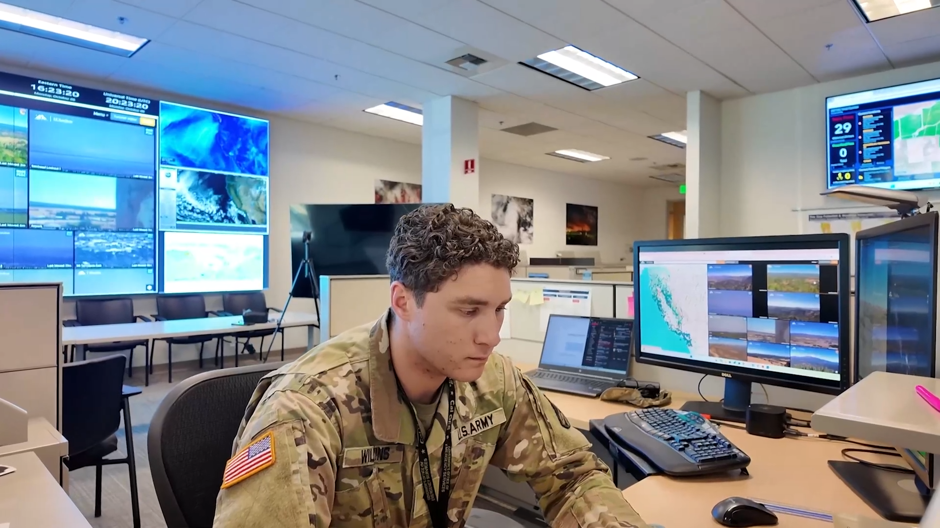 Sgt. 1st Class Landis Rush explains how intel analyst Soldiers and Airmen analyze satellite imagery to detect wildfires early. FireGuard uses a combination of satellite and drone imagery to provide real-time updates on fire activity to firefighting professionals. (Video by David Loeffler)