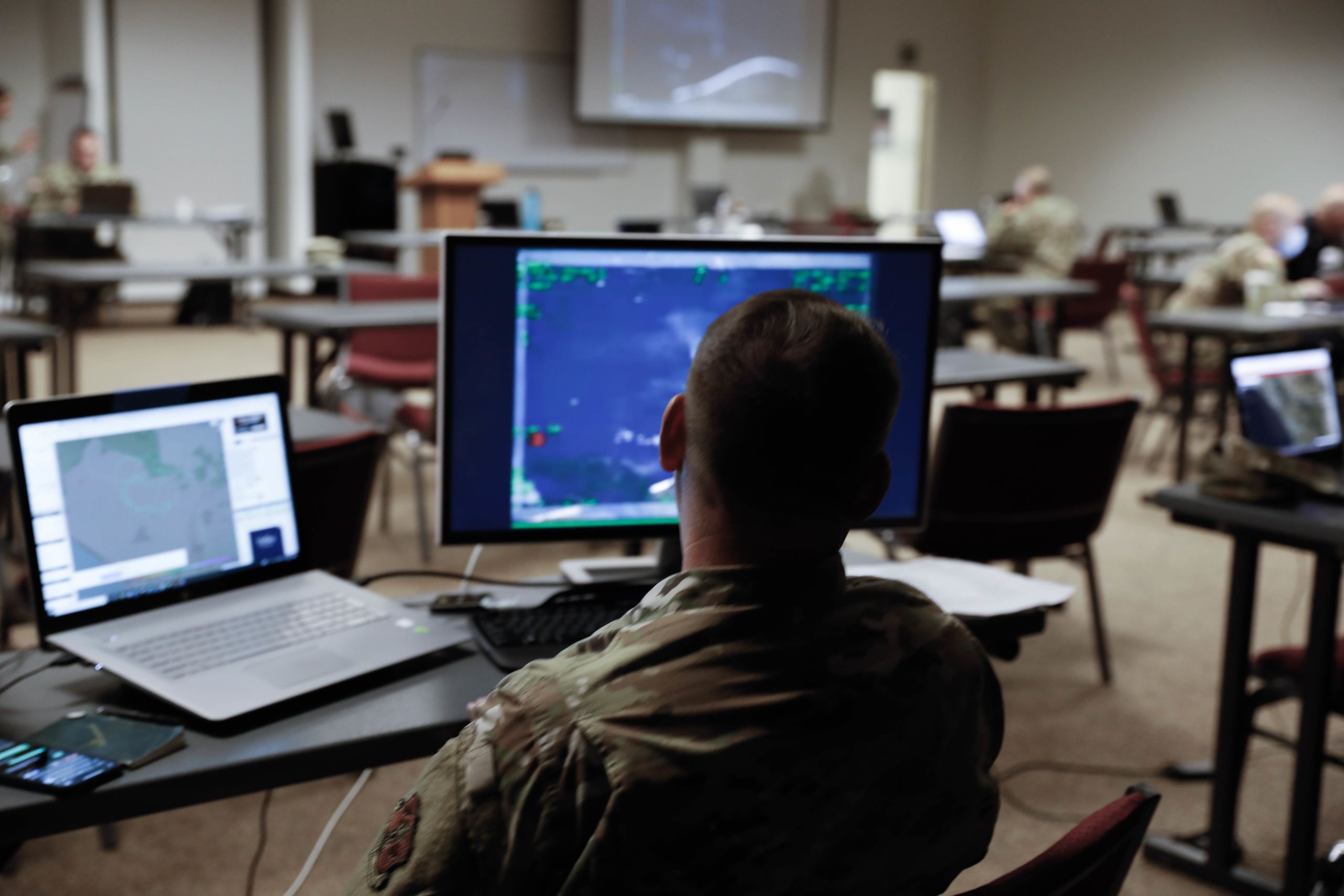 At the same time, California National Guardsmen at five different locations across the state analyze data and schematics gathered in cyberspace, tracking the movement of aerial assets over an active burn exercise taking place 50 miles south at Marine Corps Base Camp Pendleton.
