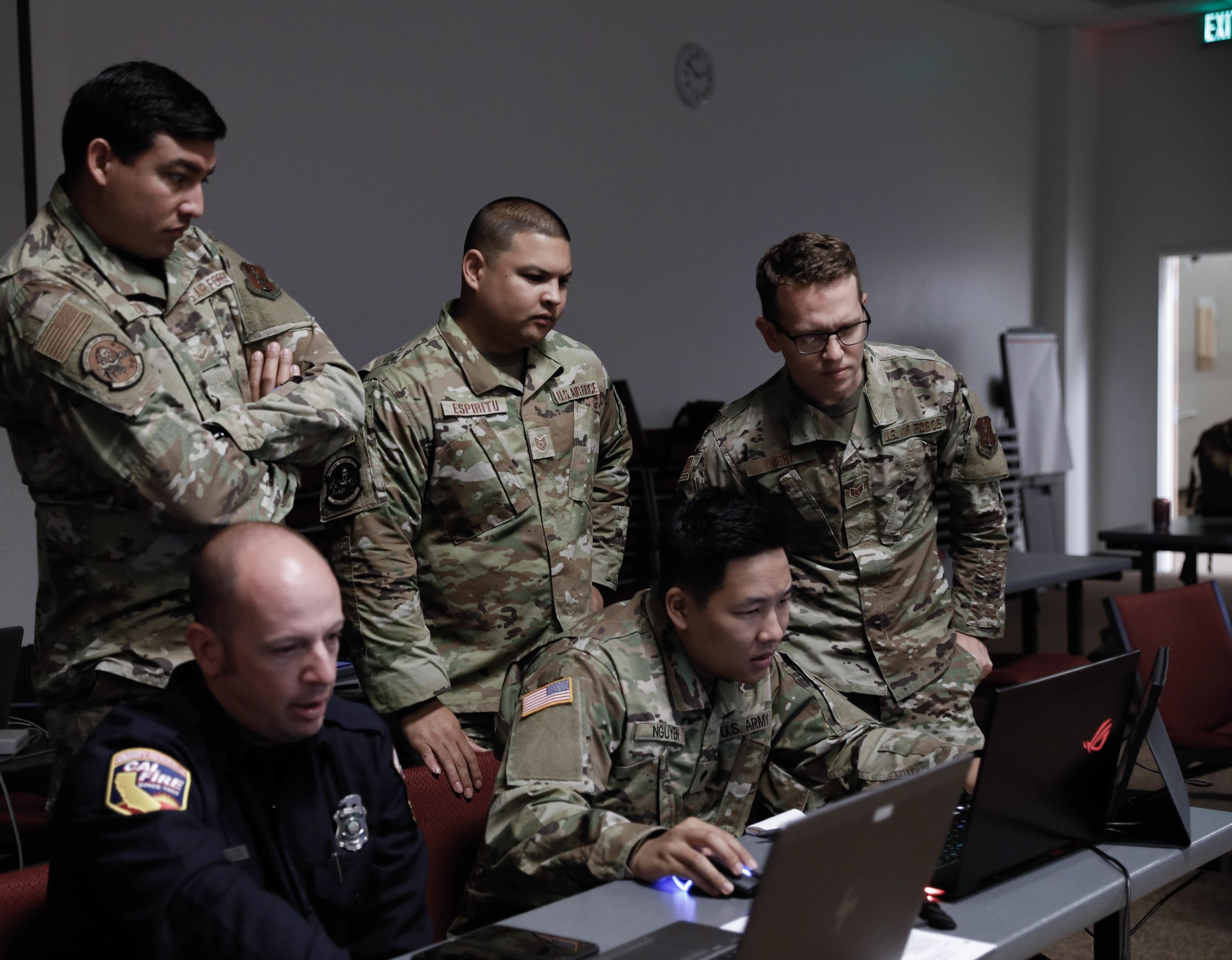 “This is a representation of the real world in a controlled environment,” said U.S. Army Sgt. Kelly Hunter, a human intelligence collector assigned to Cal Guard’s 223rd Military Intelligence Battalion. “We are going through all the motions, getting all the players to go through a dry run of what they would do in a real-time incident.”
